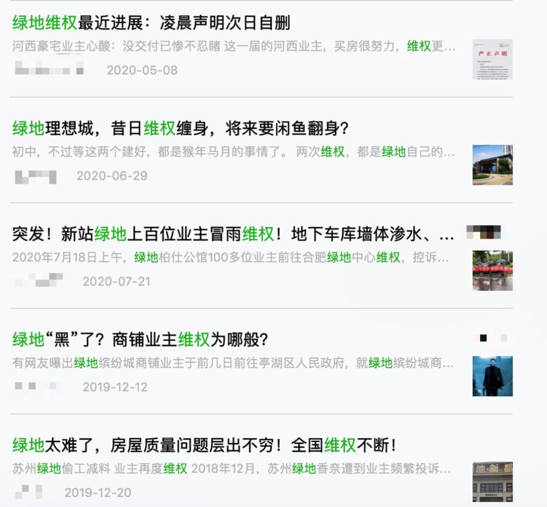 接着是绿地,网上随便一搜,全屏幕都是烂尾、维权、控诉……绿地的业主们的怒气都能冲破屏幕了。