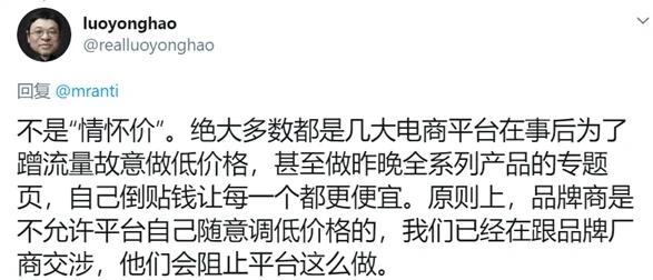 罗永浩谈品牌方与平台主播的定价矛盾