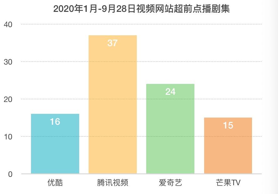以超前点播剧数量最多的腾讯视频为例,自9月开始,腾讯视频就一连官宣了六部可超前点播观看的新鲜自制剧,对此付费模式的执行力度可见一斑。2020年截止9月28日,爱优腾芒合计播出了92部超前点播剧。其中,腾讯视频可超前点播观看的剧集有37部,爱奇艺24部、优酷16部、芒果TV15部。