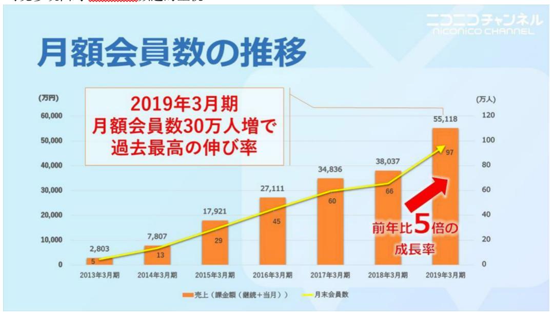 niconico频道的月付费会员数和销售额的增长情况