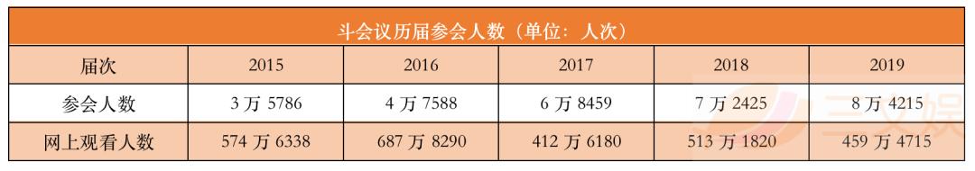 斗会议是由多玩国主办的游戏粉丝聚会兼电竞大赛,最早于2015年开始举办,每年举办一届,每届为期两至三日。历届参会人数一直在增多,从35786人次到84215人次,5年间涨了2.3倍。其网上观看人数更是稳定在了500万上下。