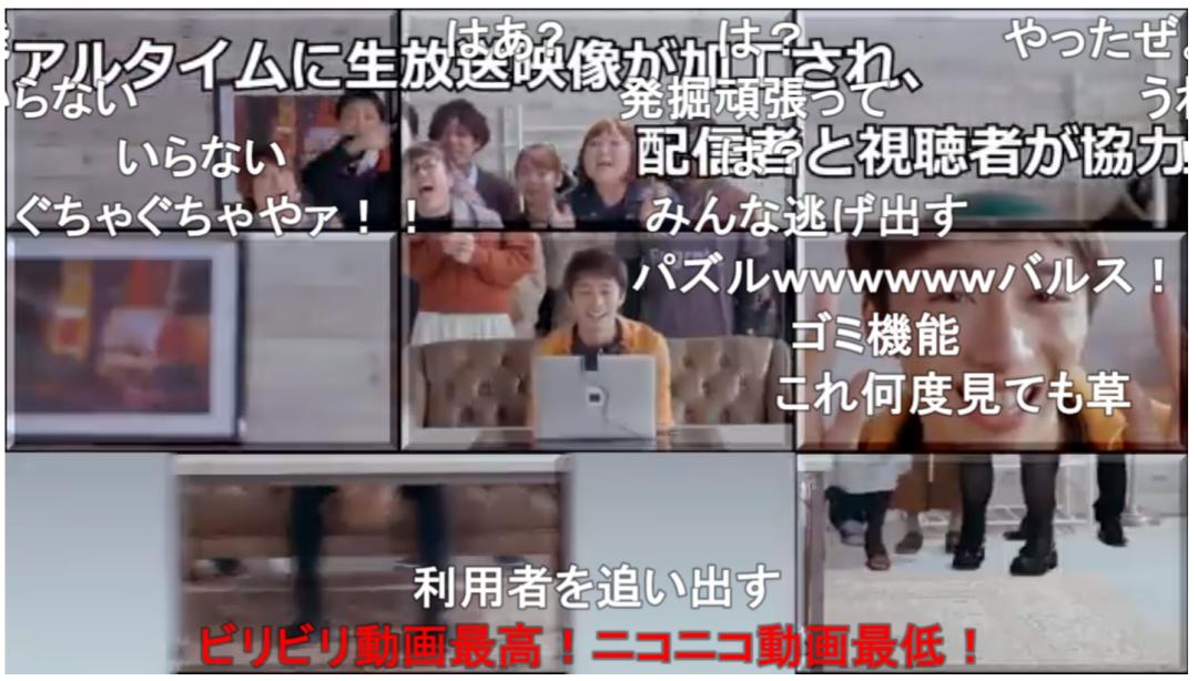 niconico(く)宣传片上甚至有弹幕说:“bilibili最棒!niconico最差!”