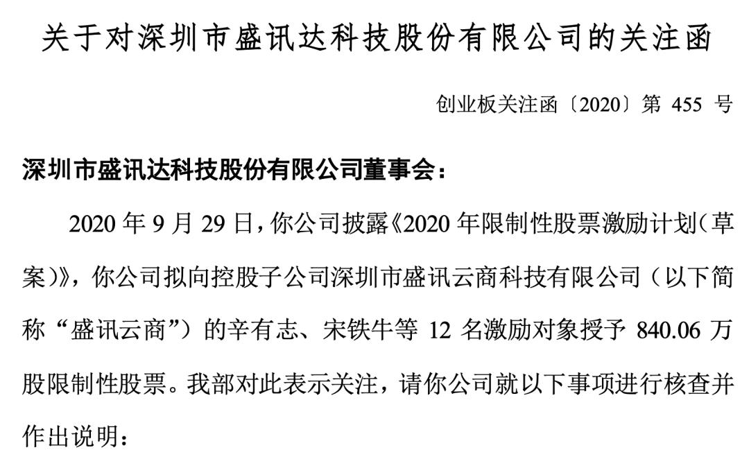 在此背景下,9月29日,深交所对盛迅达下发关注函,要求说明公司向辛有志控制的广东辛选控股有限公司(简称辛选)转让盛讯云商49%股权的具体过程及其作价公允性,并结合公司现有业务与网红业务模式的差异等说明与辛有志等进行合作的目的,是否蹭网红概念炒作公司股价,以及股权转让完成后公司能否有效控制盛讯云商。