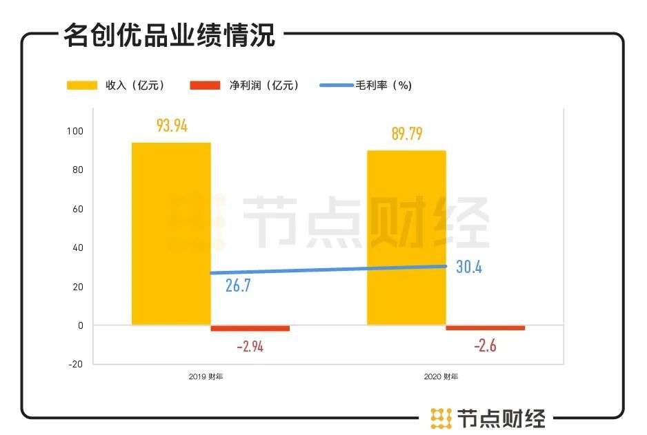 业绩上,于2019财年和2020财年(截止6月30日),名创优品收入分别为93.94亿元、89.79亿元,2020财年收入同比下降4.62%,主要系疫情影响下海外市场门店关闭了20%以上。