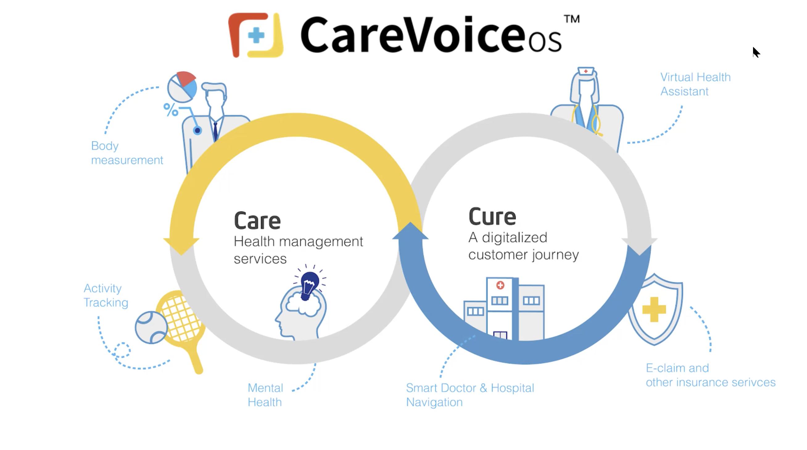 创始人兼 CBO Jan Velich 详细介绍了康语的系统解决方案 CareVoiceOS ,是专门为保险公司创建的运营操作系统。Jan 提到,关护和治疗是康语聚焦并试图连接的两大核心板块,为投保用户提供无缝的一站式健康管理和保险体验,该系统可灵活嵌入保险公司 App /微信端服务平台,为用户提供病症预判、寻找合适医院、预约就诊以及保单管理等服务。
