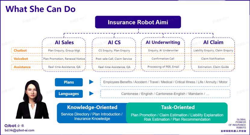 图:企保机器人 Aimi 的服务能力和服务场景