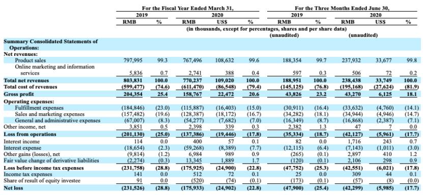 招股书显示,波奇宠物2020财年(2019年4月-2020年3月),波奇宠物GMV为15.6亿元人民币,营收为7.7亿元人民币。2021财年一季度(2020年4月-2020年6月),波奇宠物GMV为5.54亿元人民币,较上年同期增长56%,营收为2.4亿元元人民币,较上年同期增长约30%。