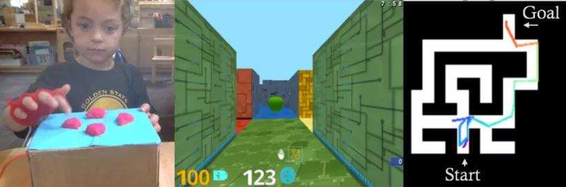 深度强化学习过去都是“机上谈兵”,不是跟人类在二维游戏里PK,就是数字网格里下棋,而儿童的探索则是发生在信息丰富的三维现实世界之中,许多潜在因素很难被应用到实验中。