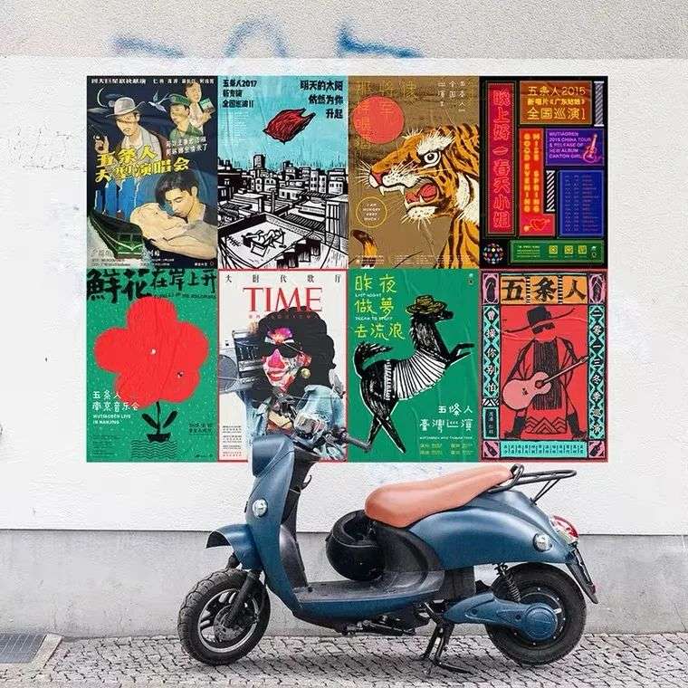 从这个意义上讲,胡镇超是五条人视觉形象的成功建构者,因为他既通过视觉设计传达了五条人本身就具有的丰富精神,同时也在更大程度上拓展了五条人的本来特质,实现了一种更高层次上的五条人美学的建构,即通往一种现代审美的五条人美学,一种属于五条人的“精致的粗粝”,一种属于五条人的“县城美学”。精致而充满表现力的视觉设计,证明着五条人并不土,反而是一种美学现代性的存在,这种美学现代性自成体系,市井却不颓废,以自我启蒙完成全部书写与价值表达。