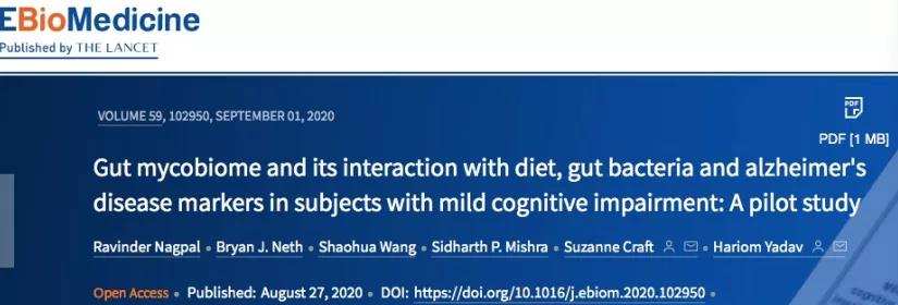 而研究人员发现,调整饮食结构会影响肠道菌群,可以改善早期AD病人的症状。因为他们发现,肠道内的菌群对于中枢神经有着直接的影响和调控,而带有早期轻微症状的阿尔茨海默病患者的肠道真菌群结构有这个高度的相似性。研究者发现通过一种改良版的“地中海-生酮饮食”(MMKD),这些早期患者肠道内的菌群会发生变化,同时患者脑脊液中的阿尔茨海默病的生物指标也能相应降低。