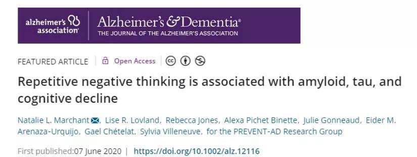 除了睡眠不足和不良饮食,我们的心态和心理状况也和阿尔茨海默病的发生有关。一项新的研究发现,在生活中重复性负面思维(RNT)与认知能力下降,导致阿尔茨海默症的两种有害蛋白质的大量沉积有关。也就是,长期心情不好、负面情绪也会加速阿尔茨海默病的病程。
