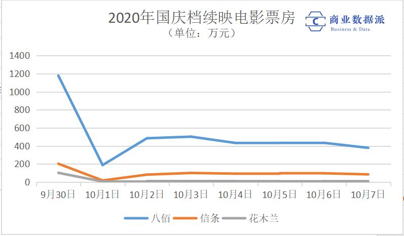 同理,《八佰》《信条》《花木兰》三部续映影片的票房自国庆档开启之日出现了大幅度的下滑之后,自2日开始也出现了回升。甚至超过了《再见吧少年》《木兰:横空出世》两部几乎没有水花的新片。