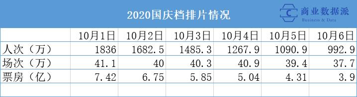 而今年因疫情而存在着诸多不可抗因素。首先,按照政策上的防疫规定,影院上座率不得超过75%。加之每场影片放映结束后,必须留出消毒和散味的时间,导致排片间隔时间拉长,排片场次与正常情况相比也有所下降。某影城经理文女士告诉《商业数据派》,去年国庆档每天的排片量是45场,今年最多只能排37场,相当于一天就少了6场。