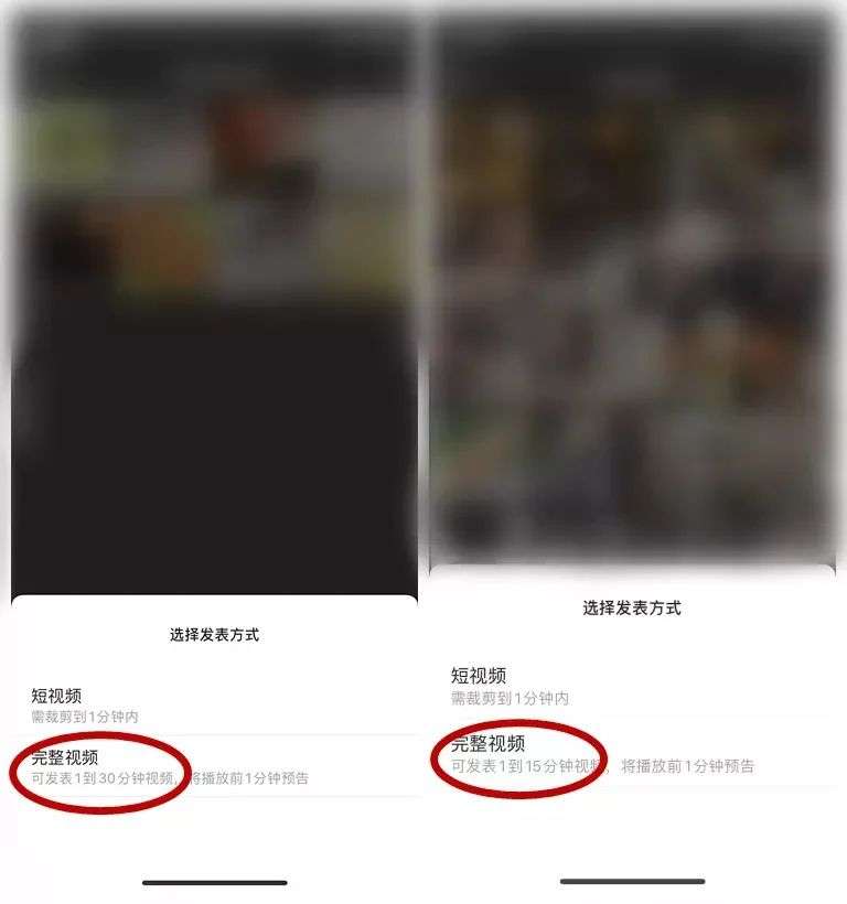 目前微信号的长视频功能只限于iOS用户。当用户在视频号上传新动态,系统会提示用户“选择发表方式”,可分为1分钟以内的短视频和1到30分钟以内的长视频。