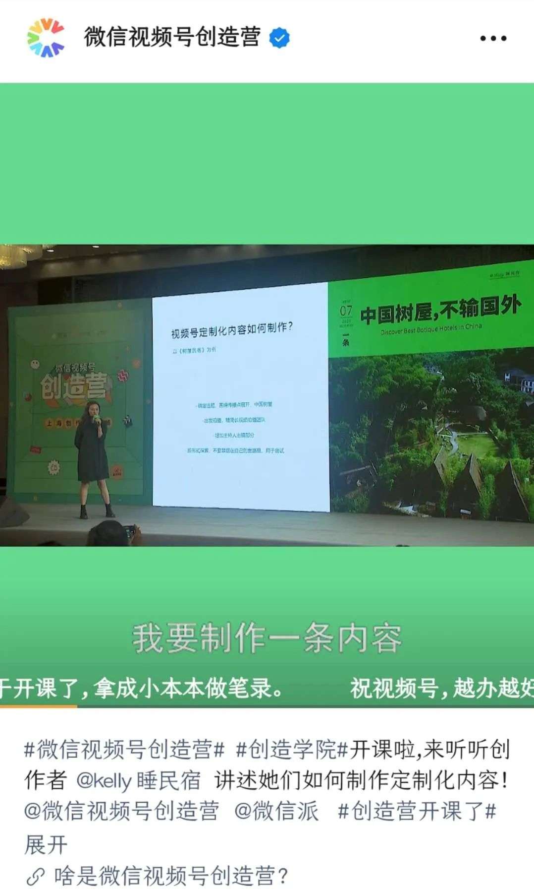 线下也分别在上海、广州、北京等城市开展创造营,邀请视频号创作者、MCN机构做分享。从官方层面来说,这是为专业机构入场视频号敞开大门。