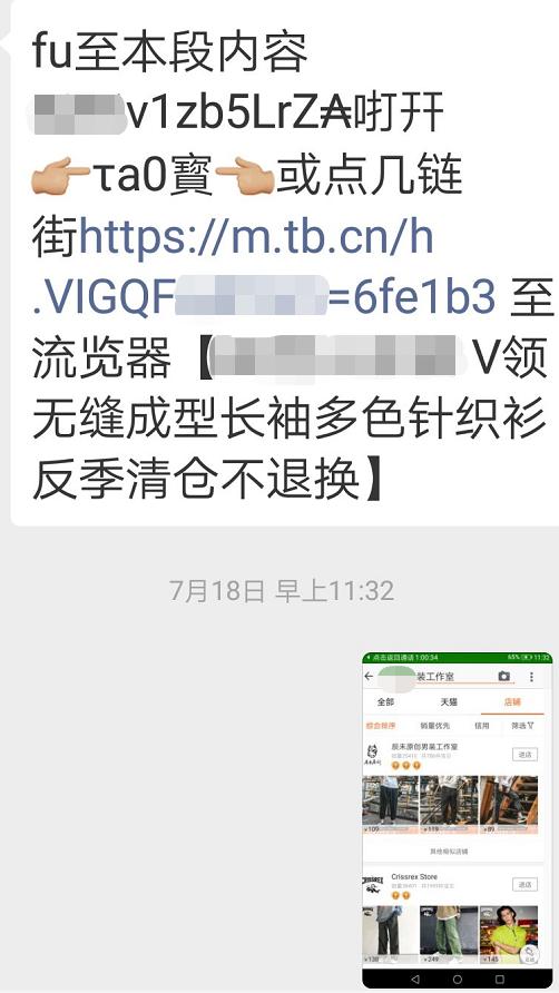 赵莉和女儿有关“淘宝商品分享”的微信对话截图。/受访者