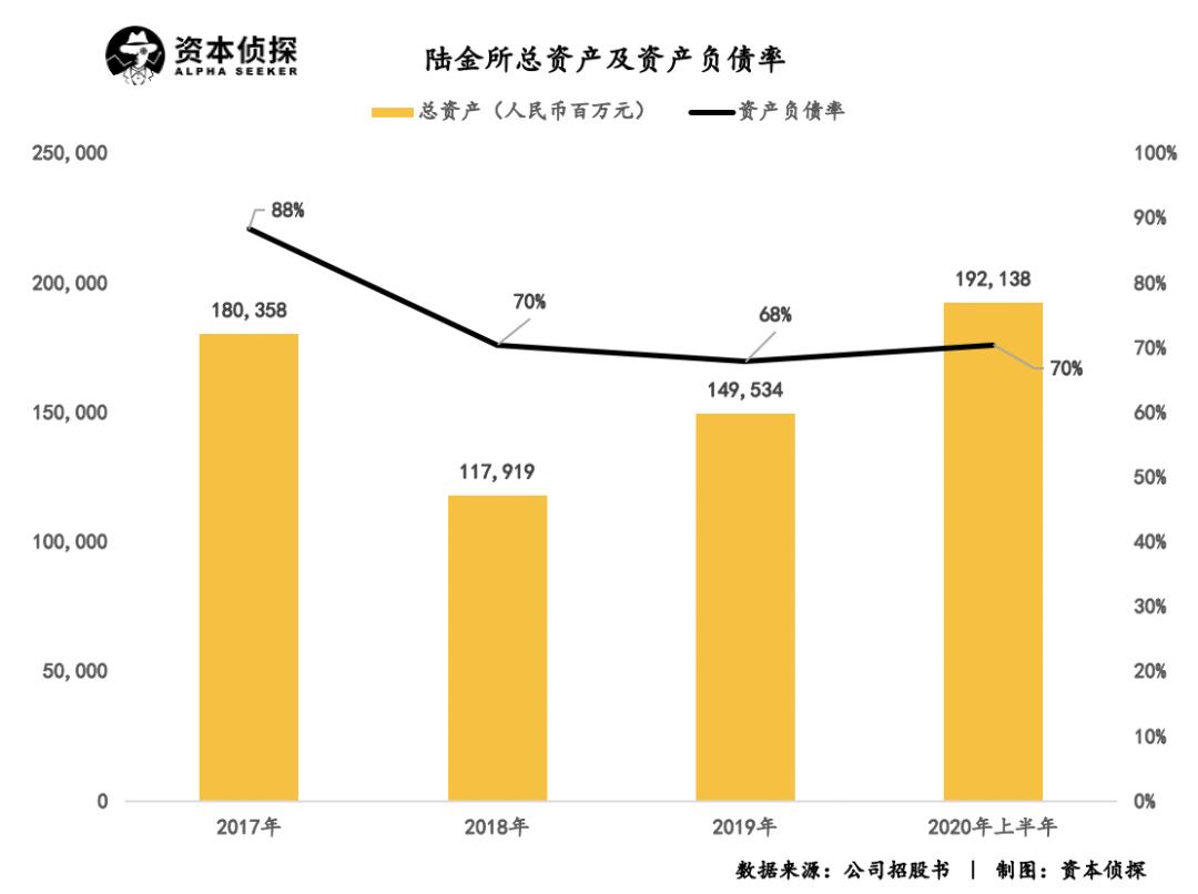 得益于良好的经营,陆金所总资产在今年上半年达到1,921亿,资产负债率维持在70%左右。