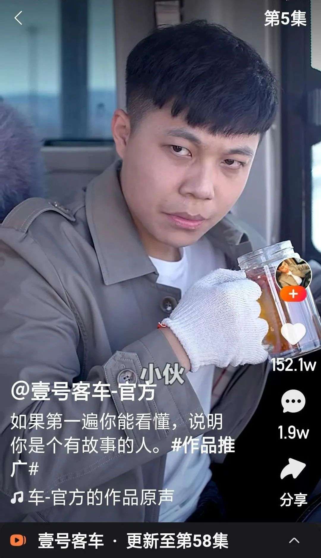 其中,《壹号客车》是记者第一个发现的短剧。剧集已经更新了60集,粉丝423.5W,每集短剧点赞大多过50W,评论数过万;置顶的一集点赞高达419W,评论过9W。《壹号客车》故事以一位客车司机为主视角,展现社会上遇到的各类人际、社会等问题,每个故事最终都以温暖的正能量为结局,容易带给观众触动和共鸣。