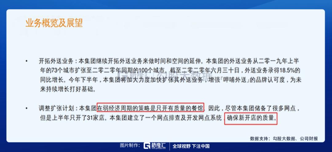 显然并不是因为缺钱,疫情期间,呷哺呷哺也同样获得了银行短期借款。对于门店扩张计划,呷哺呷哺的财报是这样披露的:尽管集团储备了很多网点,但上半年只开了31家门店,确保新开店的质量。战略指导是“弱经济周期之下只开有质量的餐馆”。