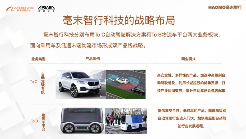 在自动驾驶领域,毫末智行有两条业务线。一条是最终面对C端用户的乘用车自动驾驶系统业务,另一条是面对B端用户的自动驾驶物流车业务。
