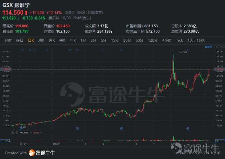 10月9日,$跟谁学(GSX.US)$宣布重大转型升级,将旗下所有的K12业务均聚合到【高途课堂】品牌之中,并且将「跟谁学」与「高途课堂」全面融合打通,此前K12业务分散在上述两个品牌之中。宣布战略转型的10月9日当日,跟谁学股价上涨超过12%,本周累计上涨23.04%。