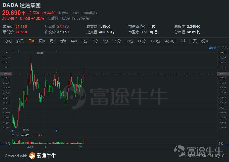 2、中秋国庆假期消费复苏,本地配送平台「达达」本周上涨明显