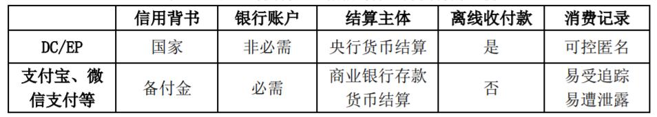 表 6 DC/EP 与支付宝、微信等第三方支付的比较