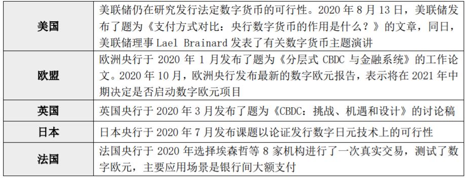 全球各国政府和央行在今年纷纷开展了对央行数字货币(CBDC)的研究,均发布了详细的研究报告,与公众沟通央行数字货币的研究进展与计划(表 2)。