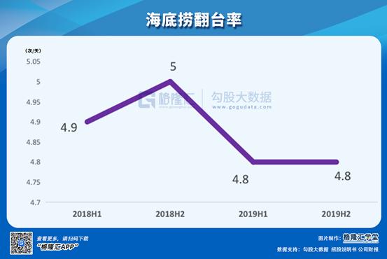 2019年海底捞的翻台率是4.8,较2018年下降了0.2。