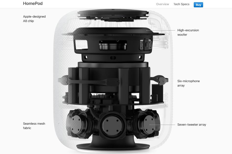 处理器“降级”,可能意味着HomePod Mini的能耗大头不再是芯片,而是关乎到音质表现的扬声器。受到体积限制,它的扬声器体积和功率很难和HomePod相提并论,而且根据外媒报道,扬声器数量也会一并精简,不再有堪称豪华的7单元360°扬声器组合。