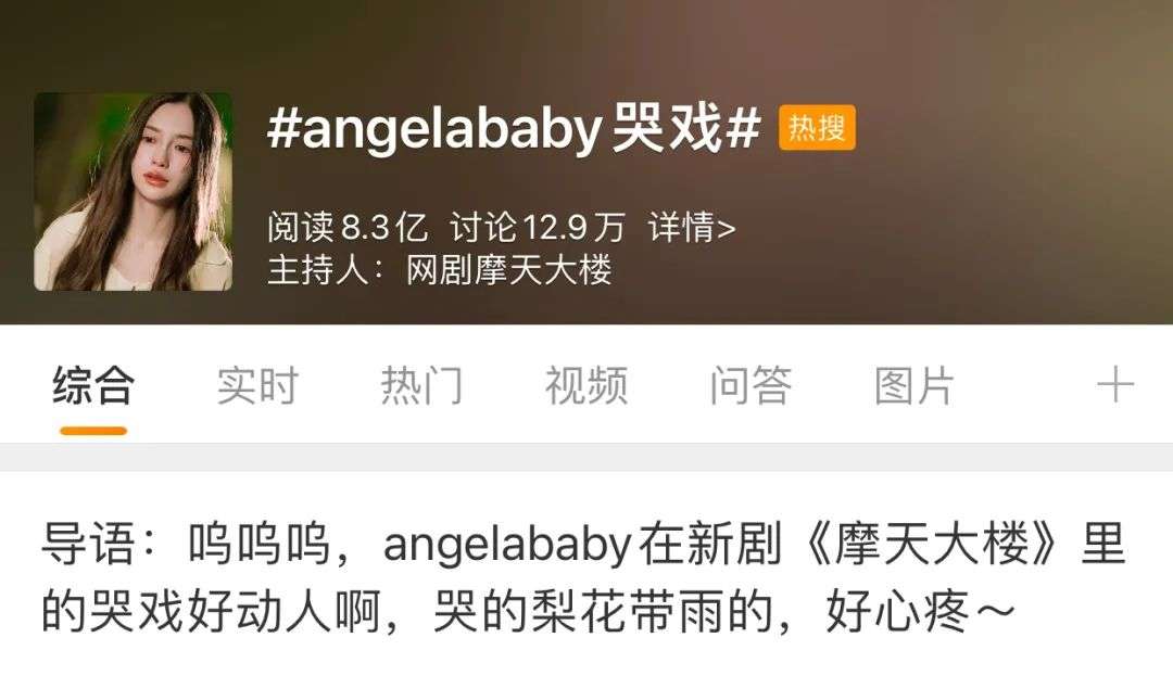 《摩天大楼》开播当日,“Angelababy哭戏”上了热搜第一。
