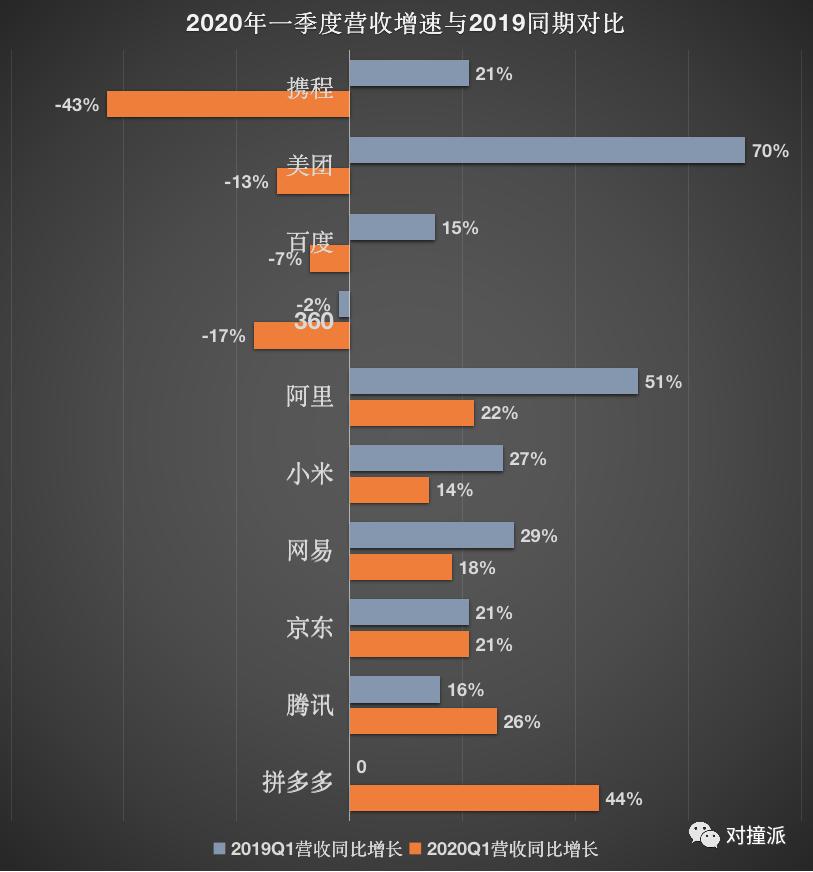 百度、三六零等以广告收入为主的公司,受疫情影响也比较明显,营收分别同比下降4%、8%。
