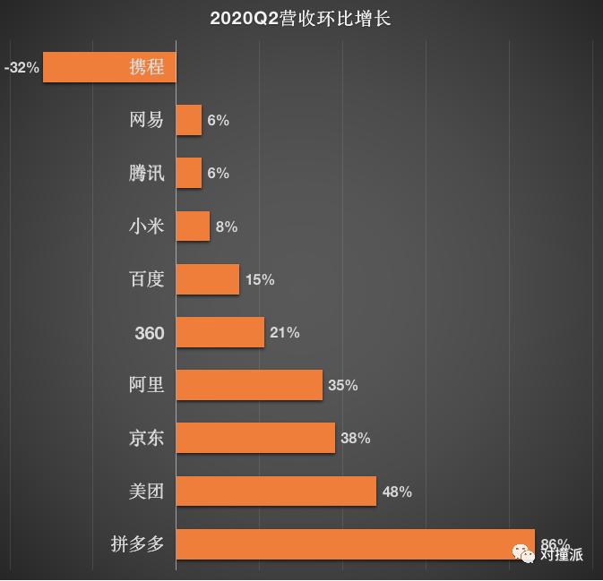 可以看到,在第二季度,除携程外,其他公司环比增长全部为正。