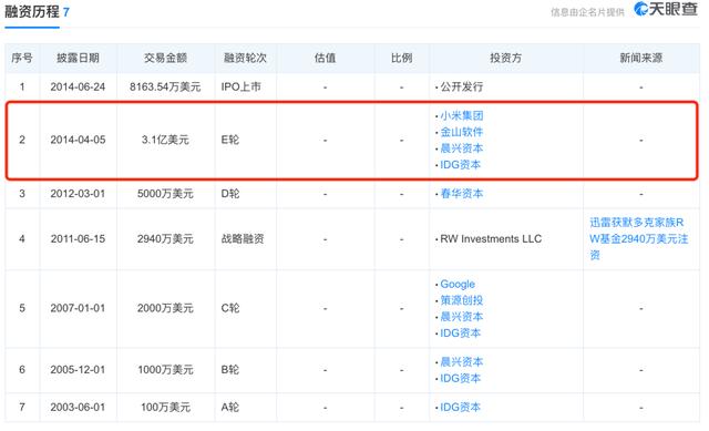 迅雷融资数据,图源天眼查