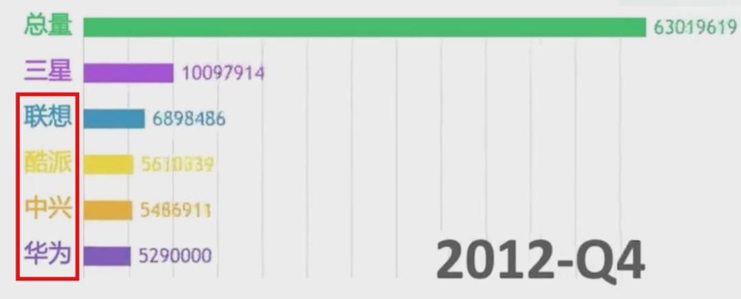 在当时,谁能想得到,短短几年后,中兴、酷派的市场份额不及1%,想从数据机构统计报告中找到他们的年销量都变成了一件困难的事情,联想市场份额也仅为2.6%,而华为却已经一家吃去了近四成市场。
