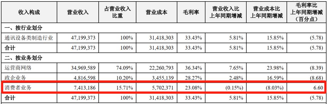 ▲中兴2020年上半年财报业务营收分布情况