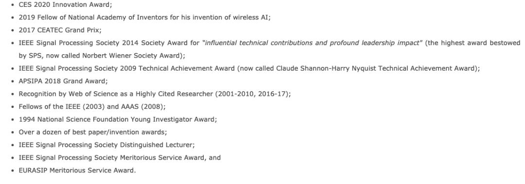 历年来,刘教授所获荣誉颇丰,2016年荣获IEEE Leon Krichmayer研究生教学和指导奖,于2014年获得IEEE信号处理学会奖,于2009年荣获IEEE信号处理学会技术成就奖。他还是IEEE信号处理杂志的创始主编。