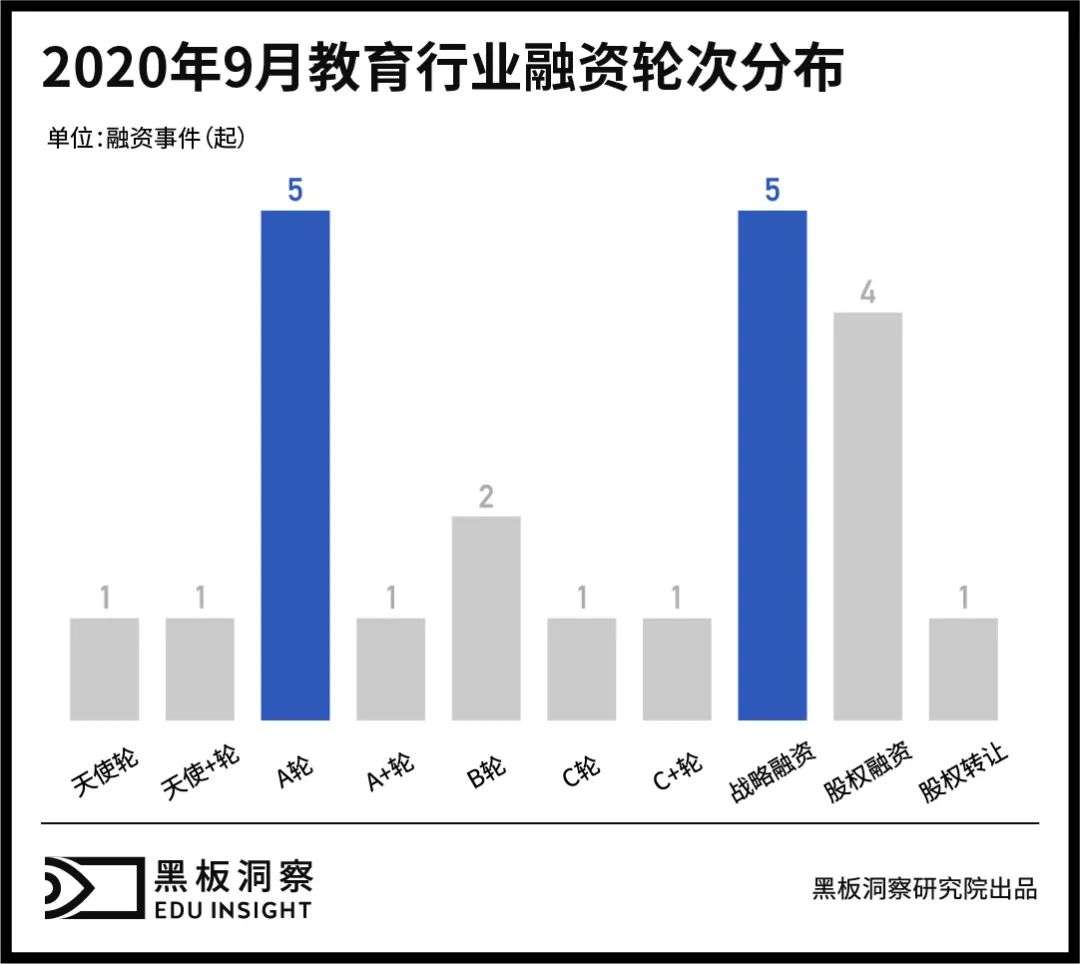 9月融资轮次中,早期融资占比下降明显,相比于8月的76.47%,9月的早期融资占比下降到了36.36%。教育行业整体马太效应初显。