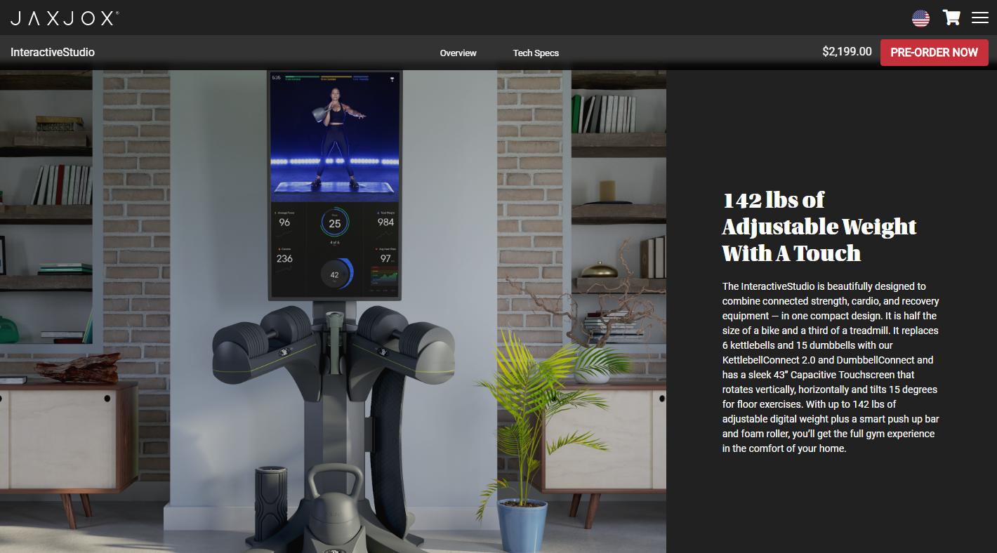 JAXJOX 不断推出家用抗阻器械:2019年,JAXJOX 推出智能壶铃 Kettlebell Connect,其重量可自由调节,同时配备活动追踪以及类似 Peloton 的订阅课程,目前零售价为299美元。同年,公司还发布了振动型泡沫轴 Foam RollerConnect,设有五个强度级别和三个按摩区,可缓解肌肉酸痛,目前零售价为99美元。