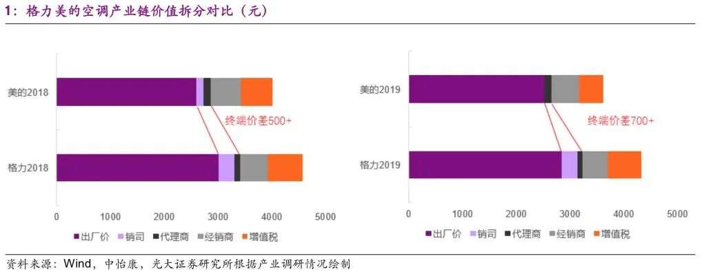 两种体系之下,格力电器与美的相比,终端价差被拉到700元以上,价格劣势非常明显。如何解决这一劣势,同样需要格力电器对渠道体系进行变革,只是目前仍未看到它的动作。