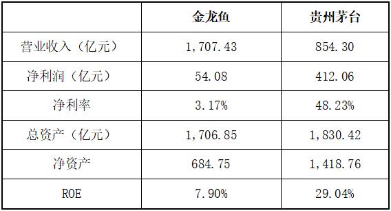 图表 1:金龙鱼与贵州茅台重要财务指标一览