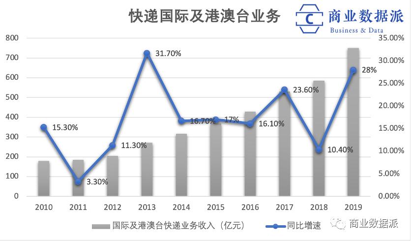 另外,随着跨境电商业务在继续扩张,跨境物流也在快速发展,不少快递公司开始把眼光放到国际化。国家邮政局称, 2019年国际/港澳台业务收入已经达到近750亿元的水平,同比增长达到28%。今年上半年,国际/港澳台业务量累计完成7.6亿件,同比增长20.9%。