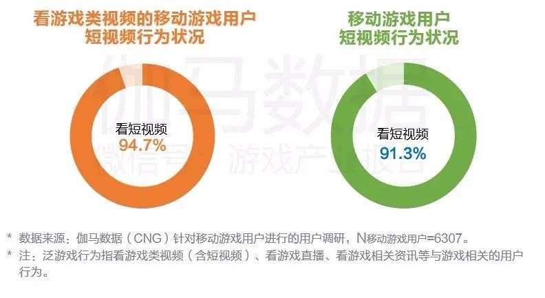 而在选择看游戏类视频这一泛游戏行为的用户中,有94.7%的用户会看短视频;在移动游戏用户中,看短视频的用户数量占比也达到91.3%。“看短视频”跃居移动游戏用户泛游戏行为的主要方式。