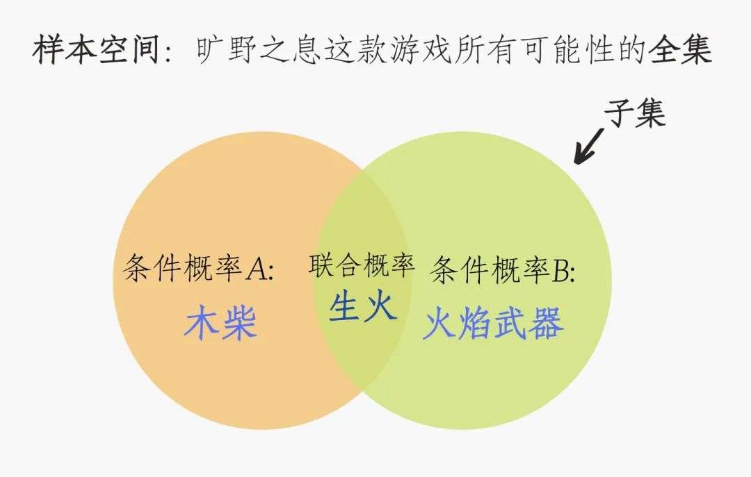 这也意味着,每个游戏玩家都会创造出独一无二的体验路线,每个体验路线都会对应着「随机事件」。每个随机事件的交叉创造出了「联合概率」,而各自的部分创造出了「条件概率」。