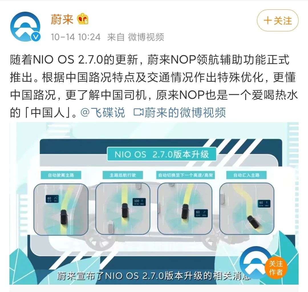 蔚来推出MOP领航辅助系统,截图自蔚来官微