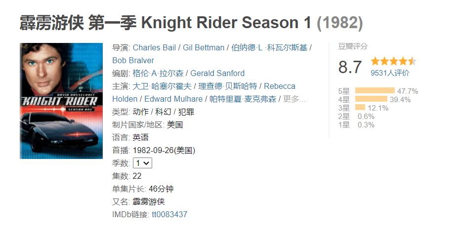 《霹雳游侠》豆瓣评分,截图自豆瓣