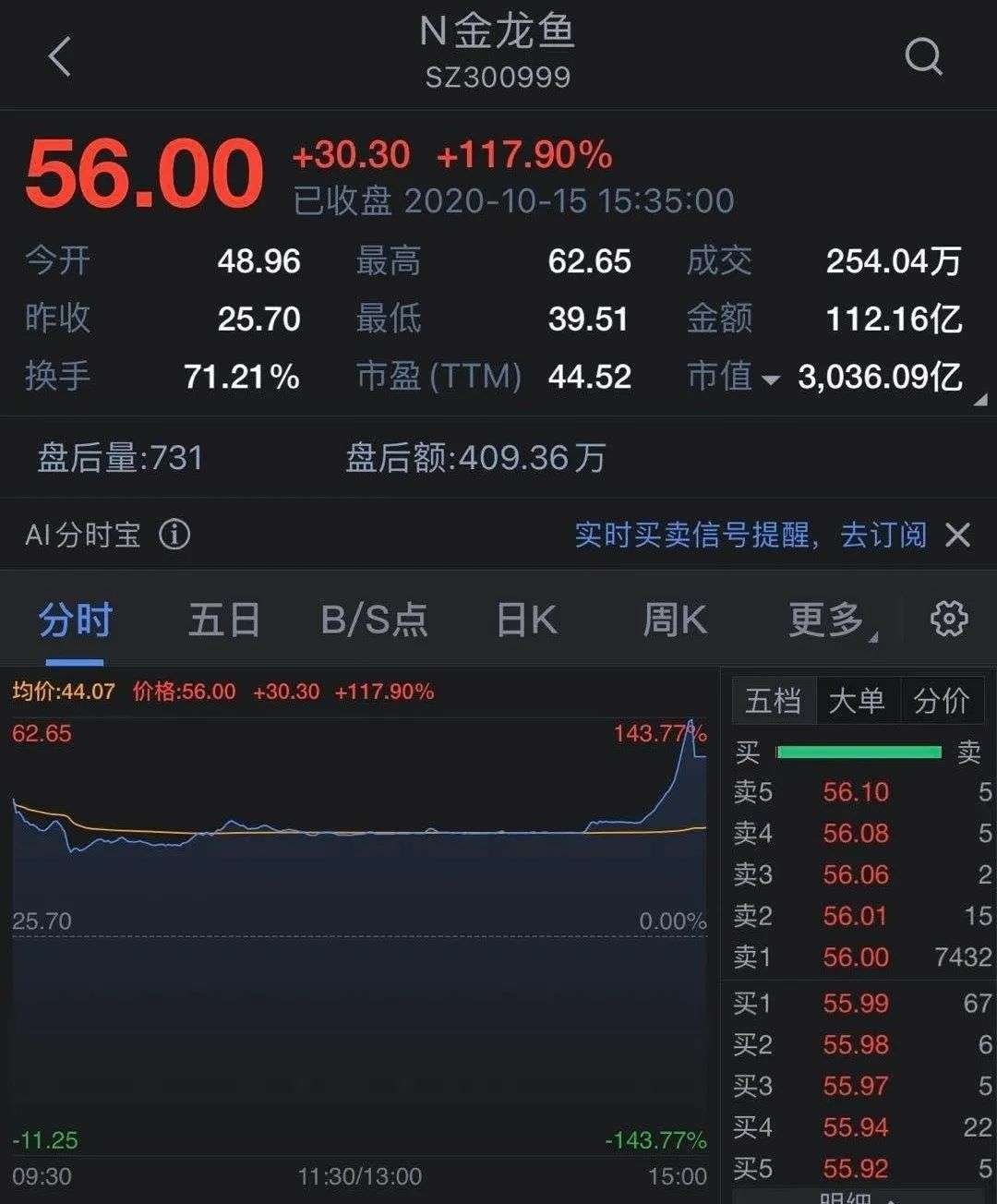 卖食用油而闻名天下的金龙鱼,昨天首次公开上市交易。出人意料的是,这支新股在收盘前,股价突然拉升,涨幅最高超过140%。