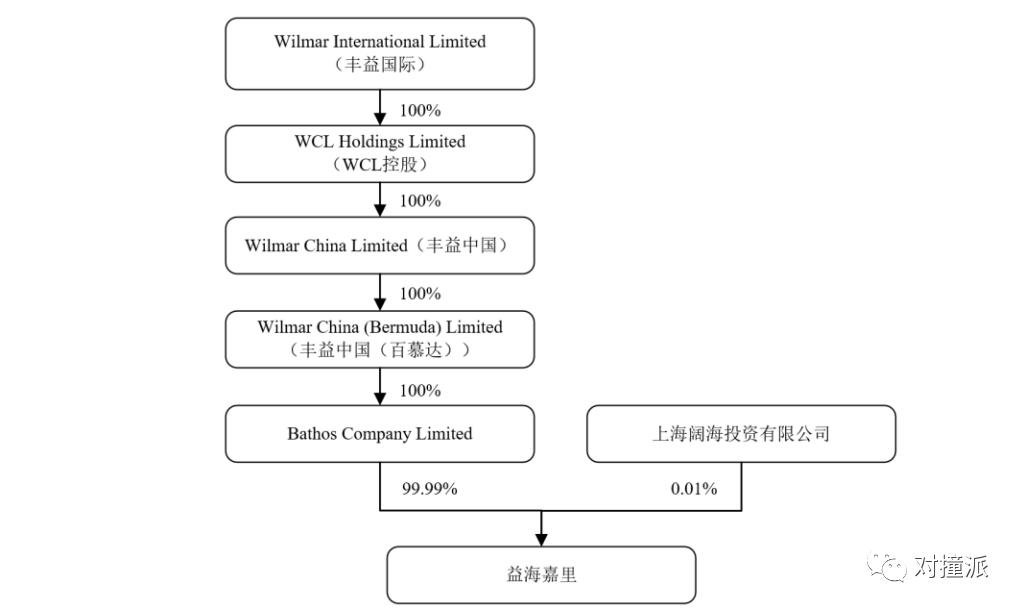 可以看到,控制益海嘉里的,是丰益国际。丰益国际依次通过 WCL 控股、丰益中国、丰益 中国(百慕达)间接持有 Bathos 100%权益。因此,丰益国际间接持有公司 99.99% 的股权。