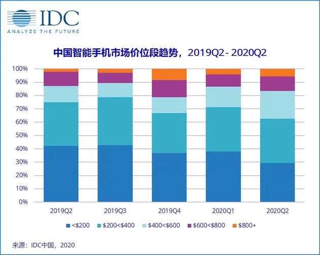 IDC数据显示,第二季度国际市场的5G手机平均单价为837美元(不含税基准,下同),而中国市场仅为464美元。而iPhone 12系列所在的600美元以上价位段的市场中,中国市场中苹果和华为分别占据约44%的份额。