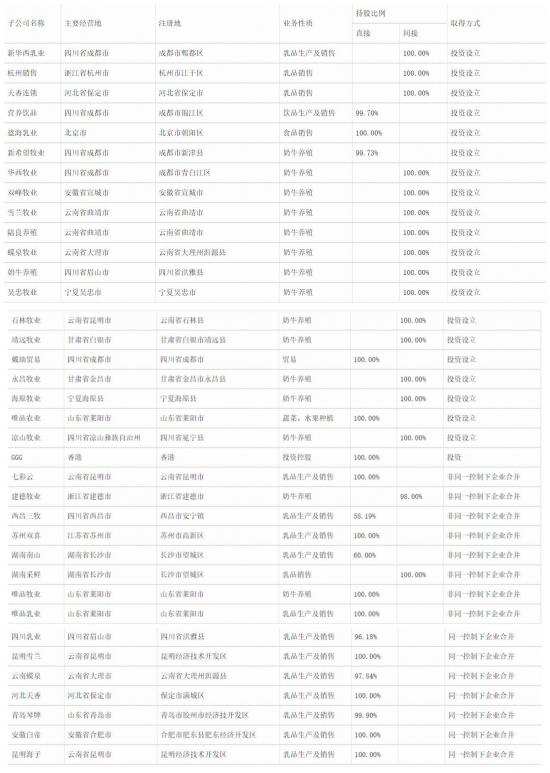 截止目前,新希望乳业拥有不同品牌的13家乳品企业和11个奶源基地。主营业务由30多家家参控股子公司承担,主要包括乳制品生产及销售公司和牧场。